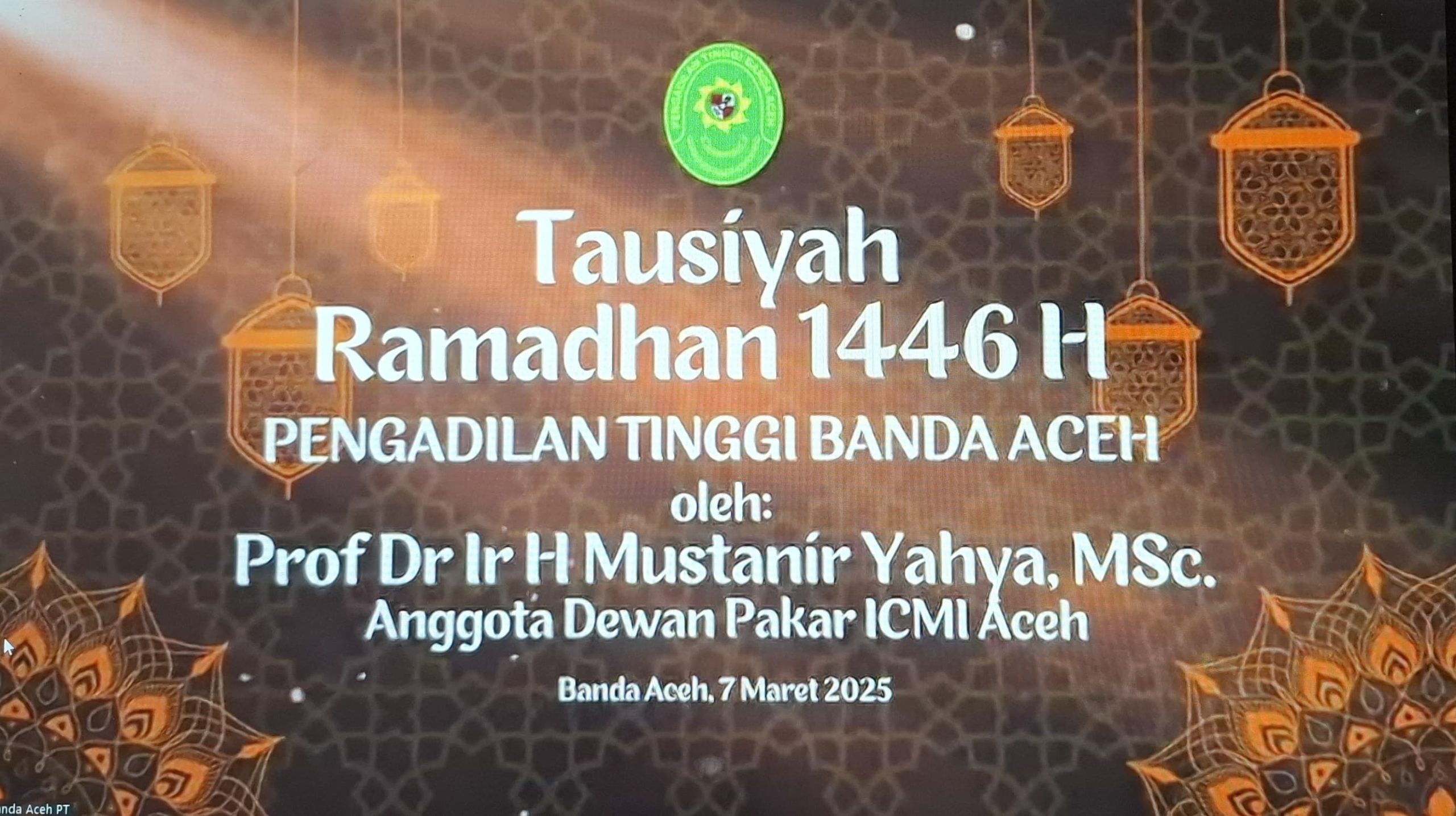 1. Pengadilan Negeri Banda Aceh diwakili oleh Ketua, Wakil Ketua, dan Hakim mengikuti kegiatan taushiyah ramadhan memenuhi undangan Pengadilan Tinggi Banda Aceh secara zoom meeting. Dengan penceramah Prof.Dr.H.Mustanir Yahya, M.Sc.