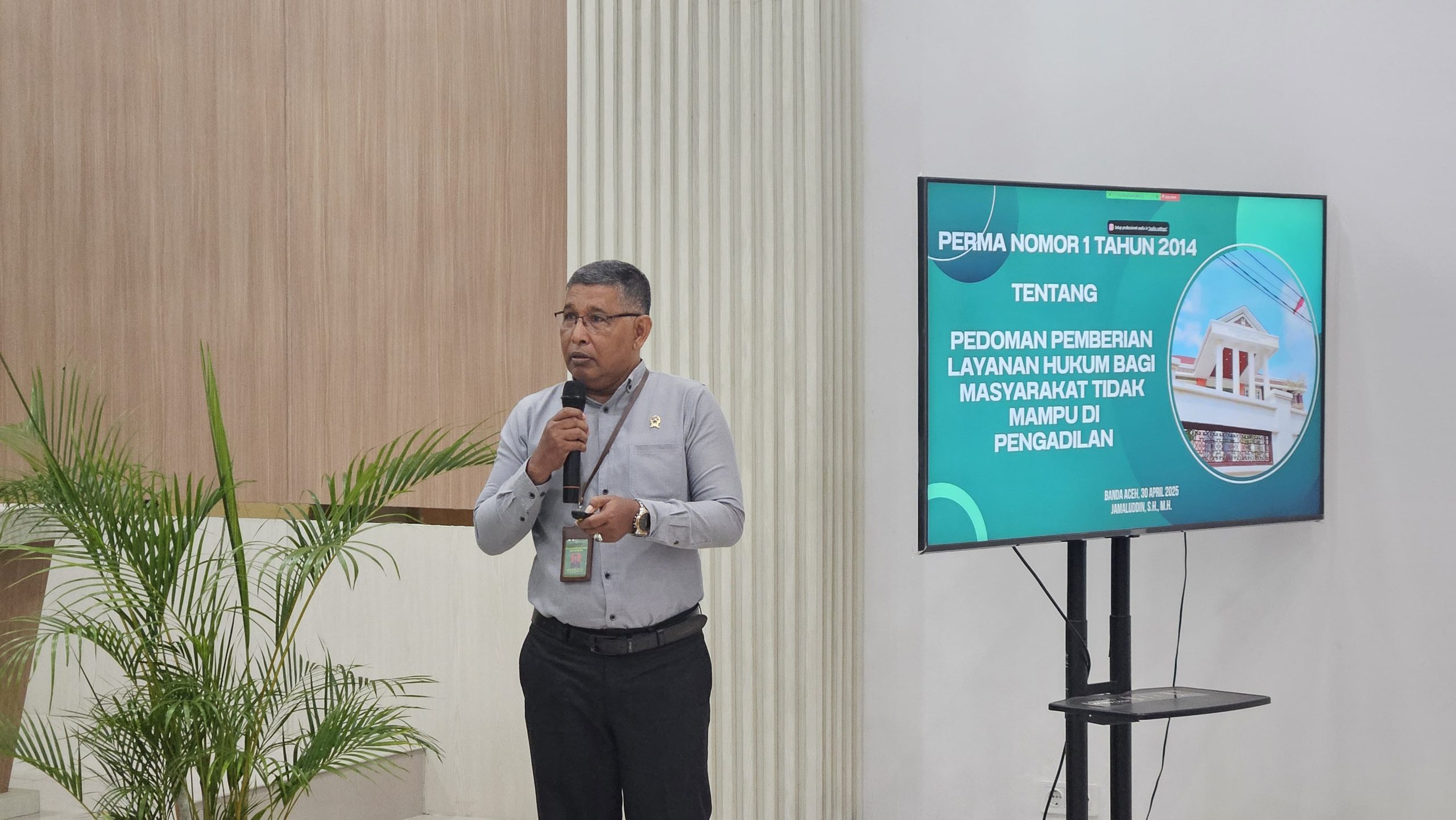5. PERMA Nomor 1 Tahun 2014 tentang Pedoman Pemberian Layanan Hukum Bagi Masyarakat Tidak Mampu di Pengadilan yang disampaikan oleh Hakim Pengadilan Negeri Banda Aceh, yaitu Bapak Jamaluddin, S.H., M.H.