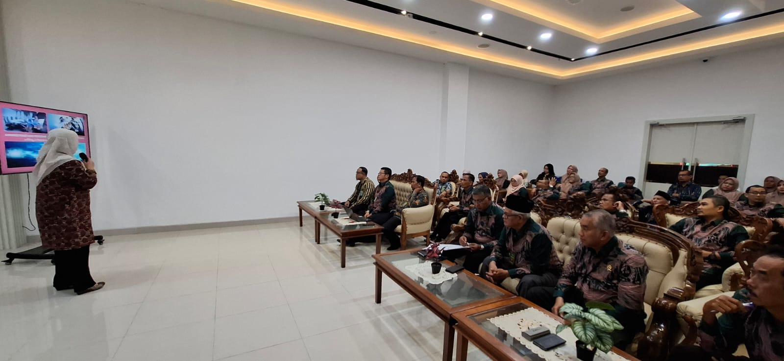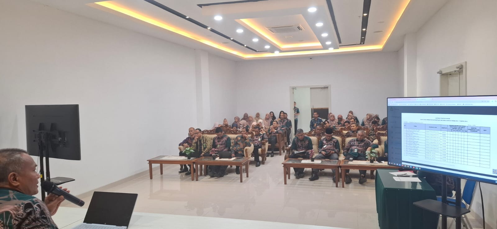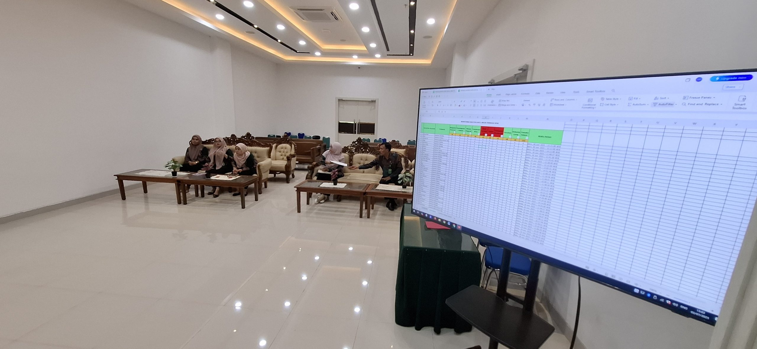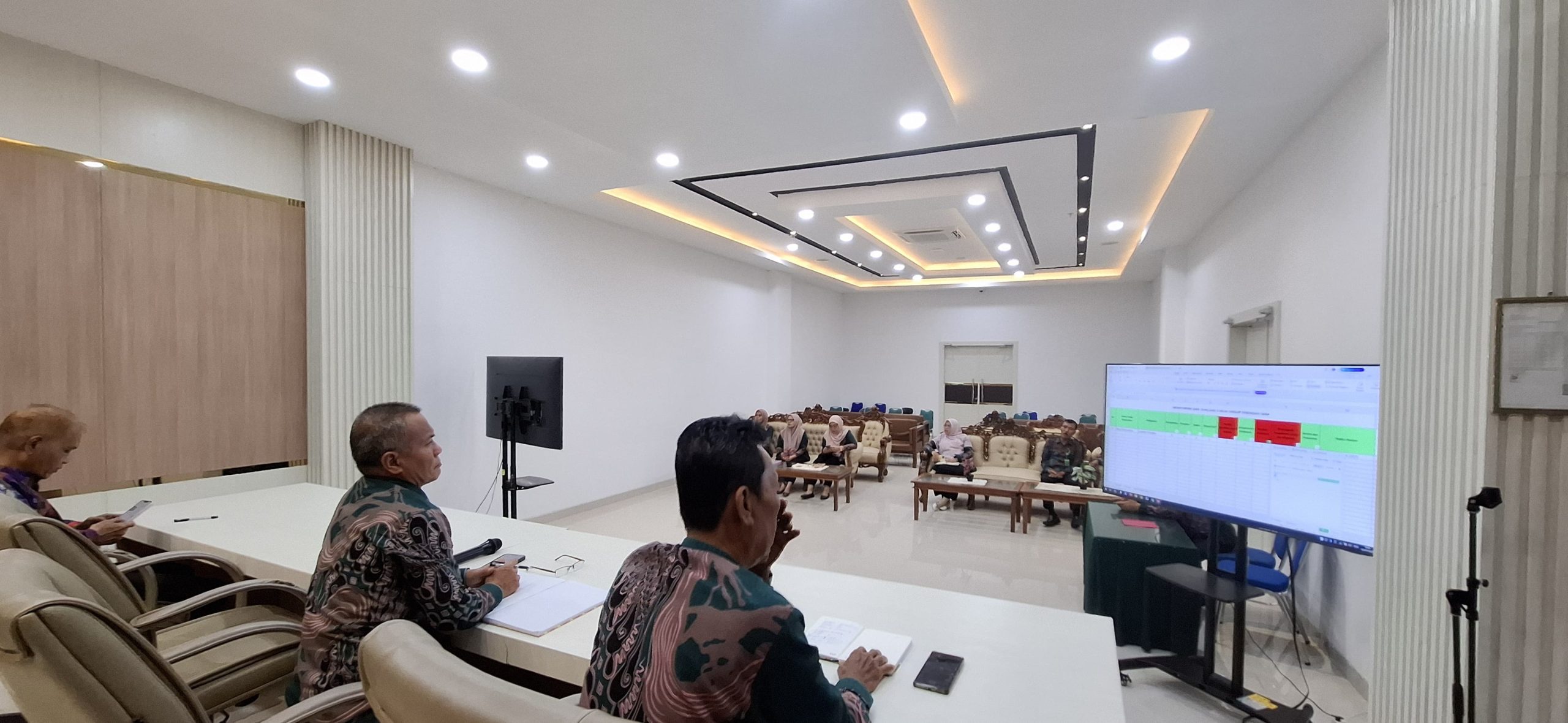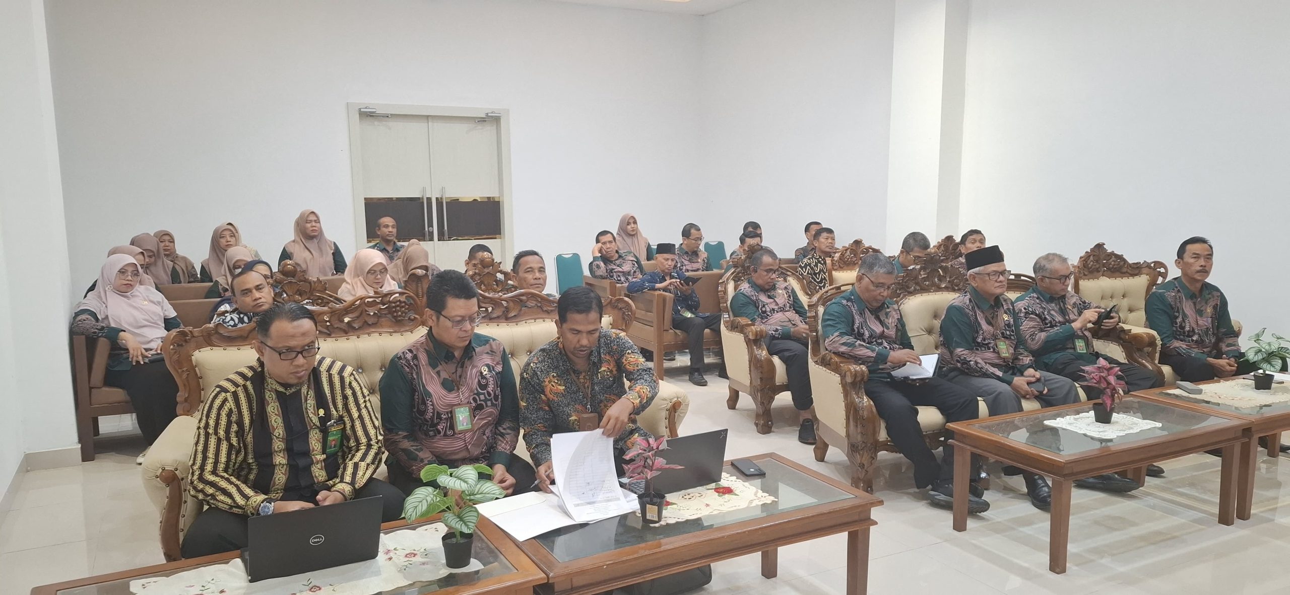Acara Monitoring dan Evaluasi yang dimulai jam 8.30 s./d. 11 00 WIB di ruang Aula dipimpin oleh Ketua Pengadilan Bapak Dr. Teuku Syarafi, S.H.,M.H. dan diikuti oleh seluruh aparatur Pengadilan Negeri Banda Aceh
