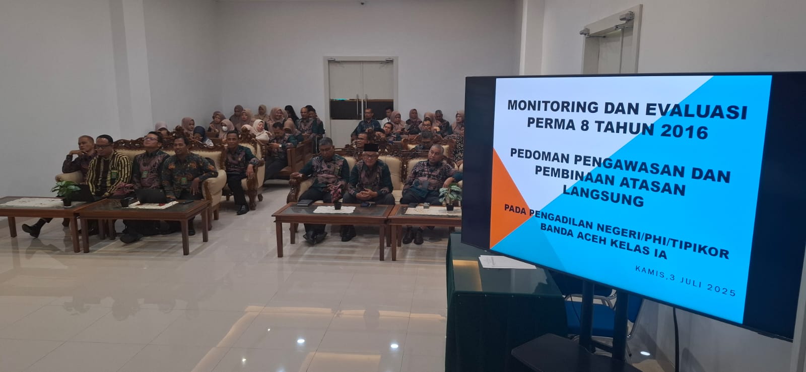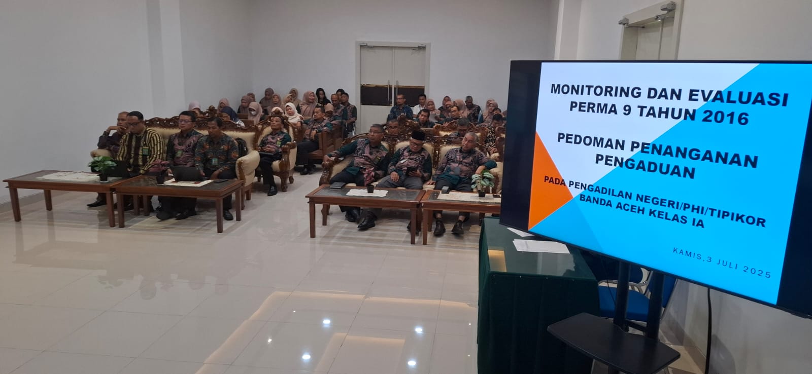Banda Aceh- Kamis (04/07/2025) Pengadilan Negeri Banda Aceh telah melaksanakan kegiatan Sosialisasi, Monitoring dan Evaluasi (monev) dan Sosialisasi diantaranya :
