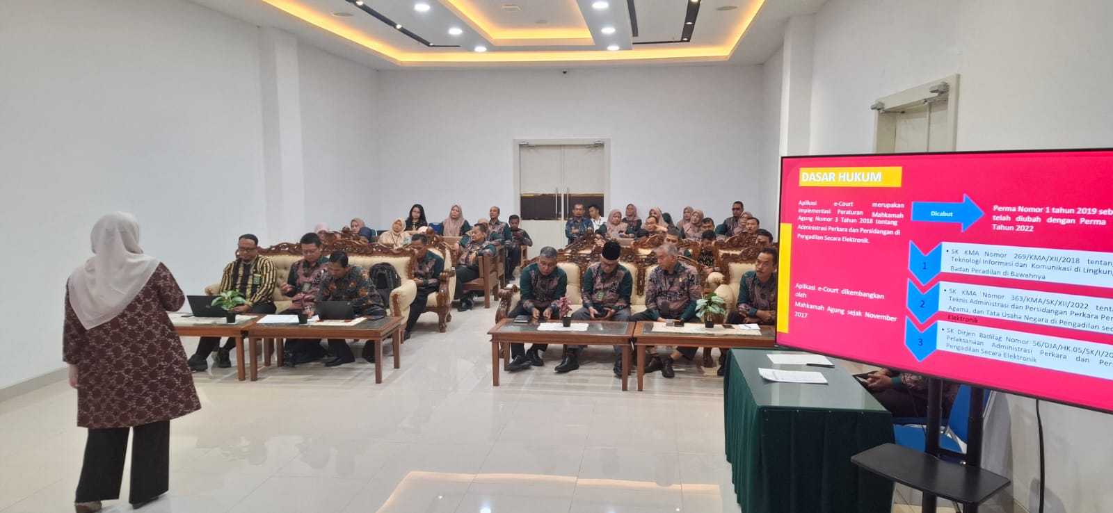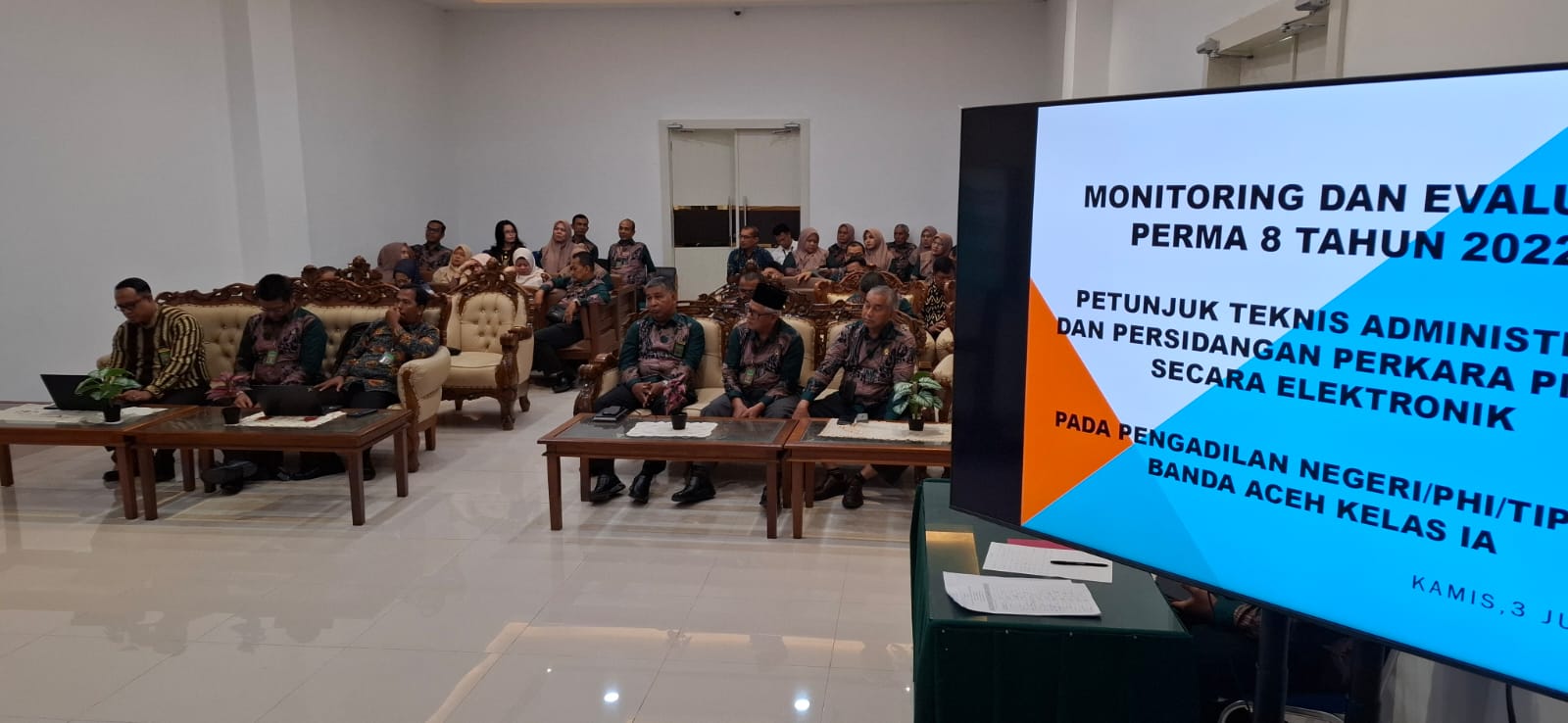 - Sosialisasi dan Monev PERMA 7 Tahun 2022 tentang Perubahan Atas Peraturan Mahkamah Agung Nomor 1 Tahun 2019 tentang Administrasi Perkara dan Persidangan di Pengadilan secara Elektronik.